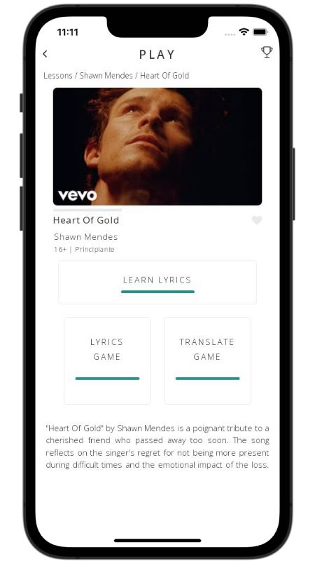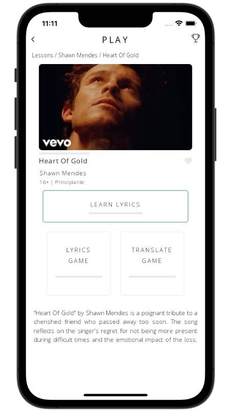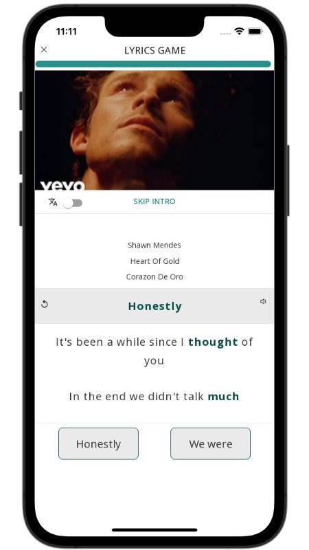 In addition to reading lyric translations, you can now learn English with music and lyrics from your favorite artists.
