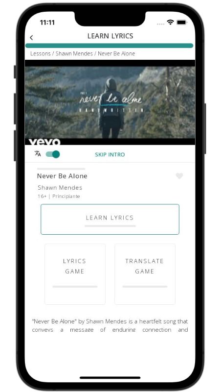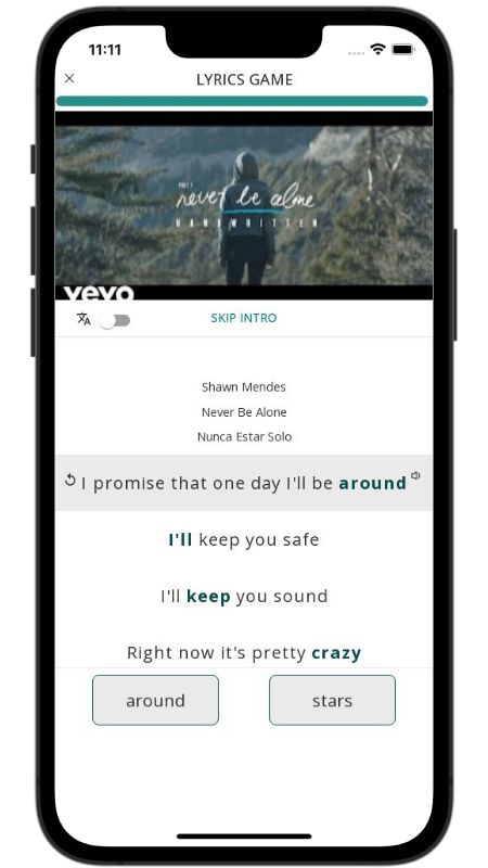 In addition to reading lyric translations, you can now learn English with music and lyrics from your favorite artists.
