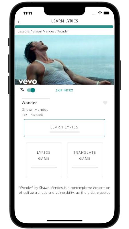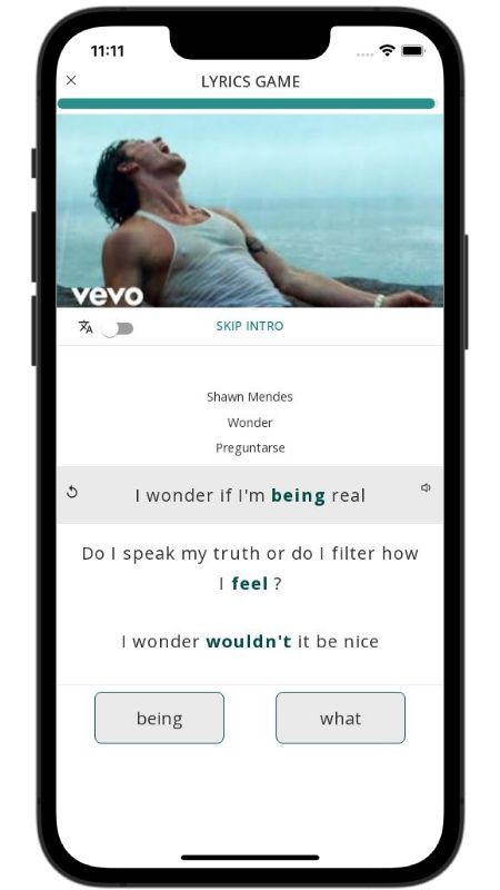 In addition to reading lyric translations, you can now learn English with music and lyrics from your favorite artists.