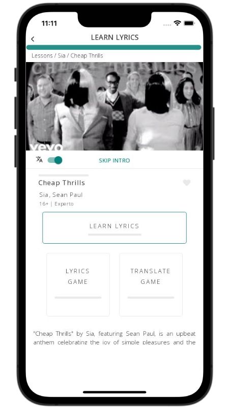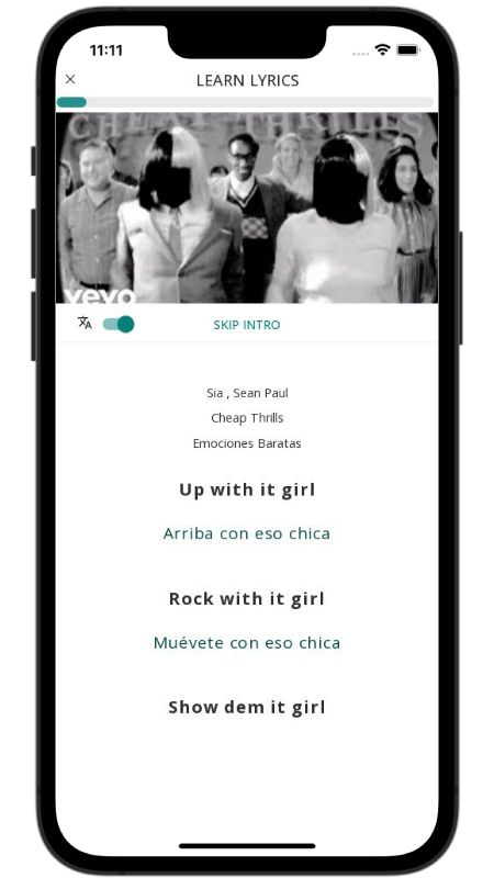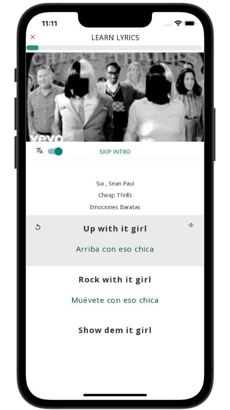 In addition to reading lyric translations, you can now learn English with music and lyrics from your favorite artists.