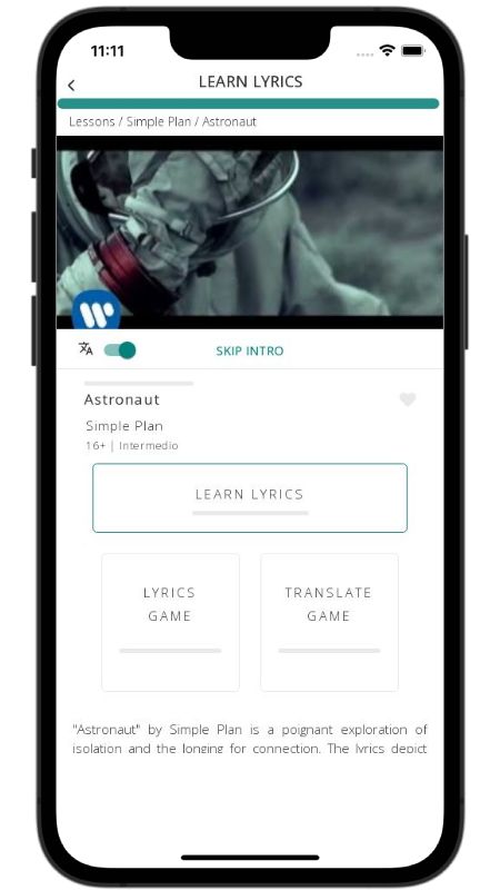 In addition to reading lyric translations, you can now learn English with music and lyrics from your favorite artists.