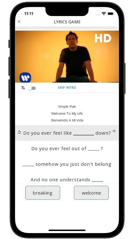 In addition to reading lyric translations, you can now learn English with music and lyrics from your favorite artists.