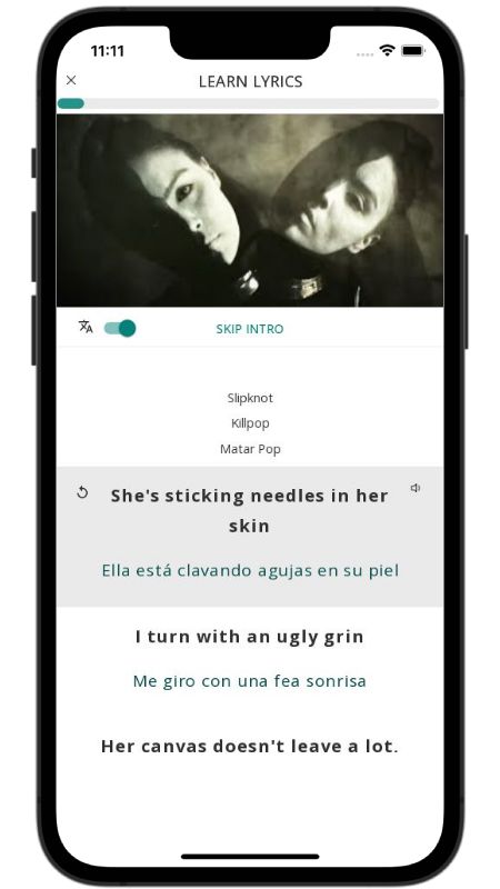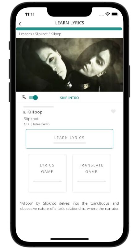 In addition to reading lyric translations, you can now learn English with music and lyrics from your favorite artists.