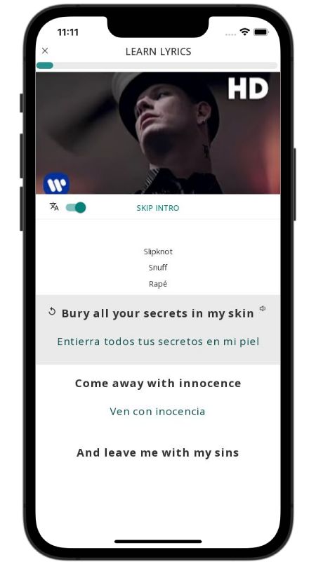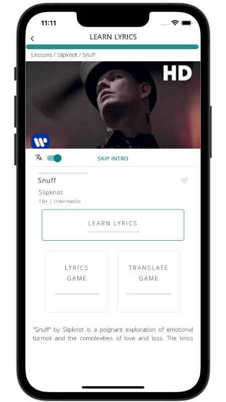 In addition to reading lyric translations, you can now learn English with music and lyrics from your favorite artists.