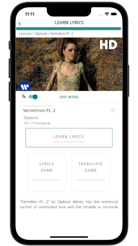 In addition to reading lyric translations, you can now learn English with music and lyrics from your favorite artists.