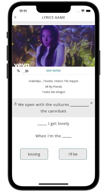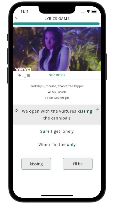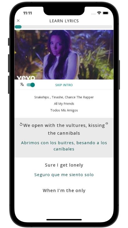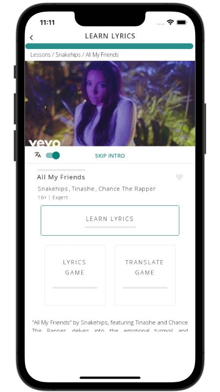 In addition to reading lyric translations, you can now learn English with music and lyrics from your favorite artists.