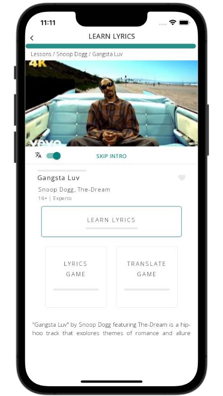 In addition to reading lyric translations, you can now learn English with music and lyrics from your favorite artists.