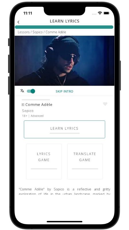 In addition to reading lyric translations, you can now learn French with music and lyrics from your favorite artists.