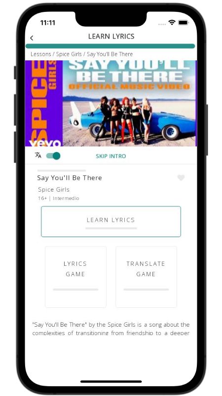 In addition to reading lyric translations, you can now learn English with music and lyrics from your favorite artists.
