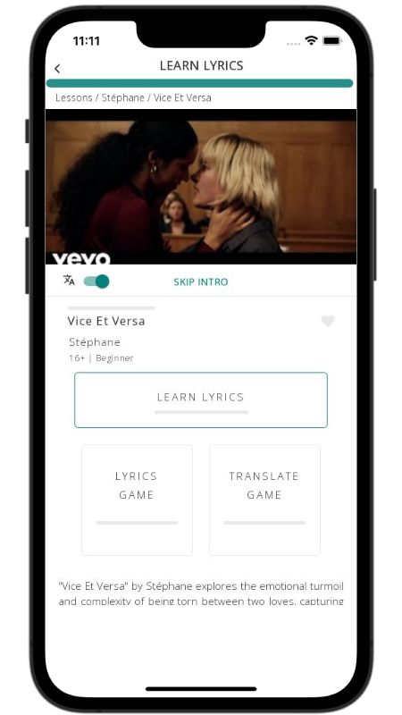 In addition to reading lyric translations, you can now learn French with music and lyrics from your favorite artists.