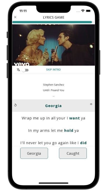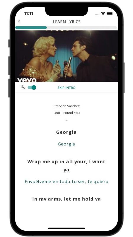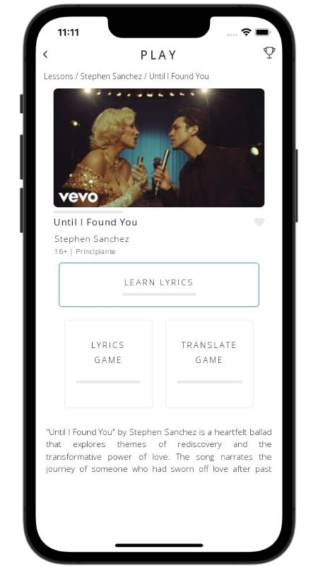 In addition to reading lyric translations, you can now learn English with music and lyrics from your favorite artists.