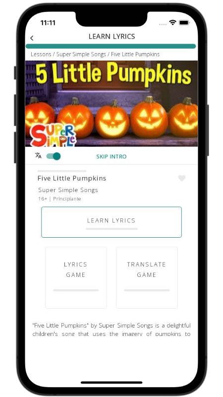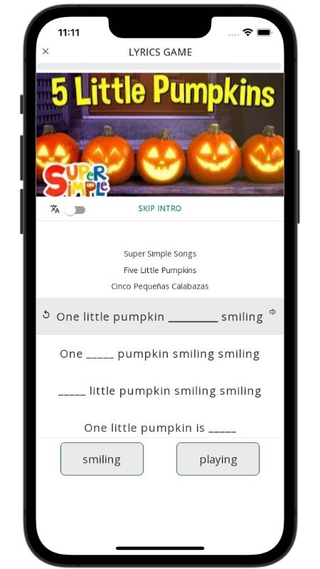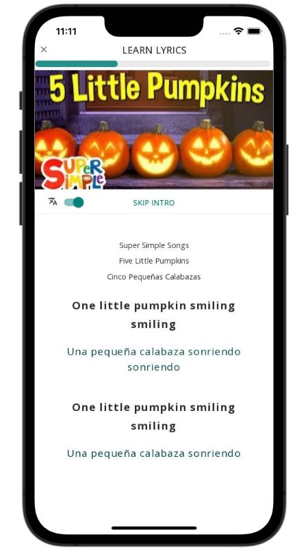 Below, I translated the lyrics of the song Five Little Pumpkins by Super Simple Songs from English to Spanish.