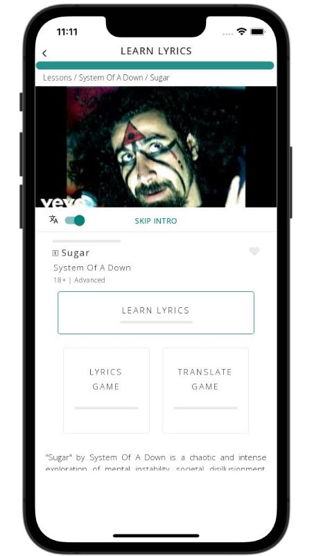 In addition to reading lyric translations, you can now learn English with music and lyrics from your favorite artists.