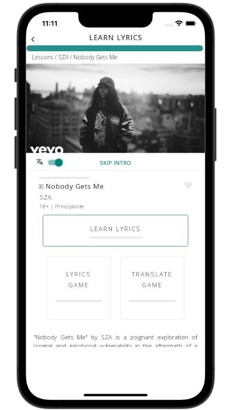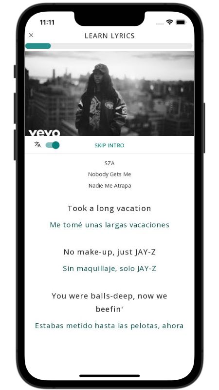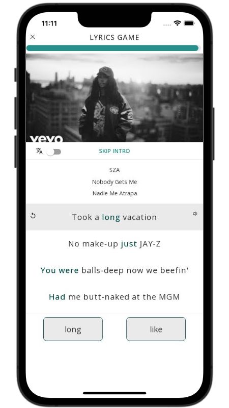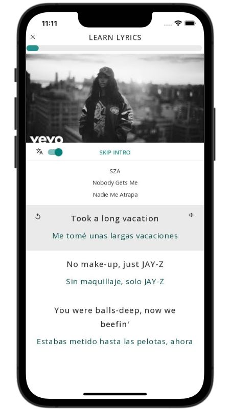 In addition to reading lyric translations, you can now learn English with music and lyrics from your favorite artists.
