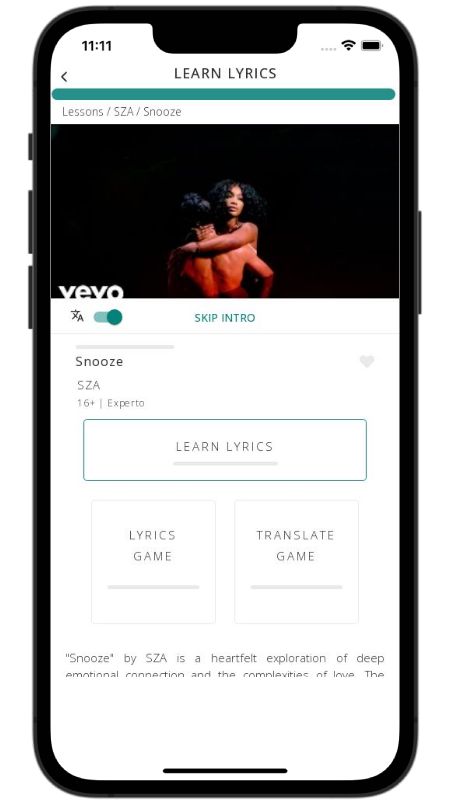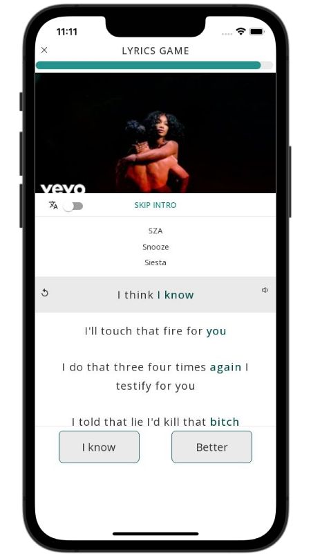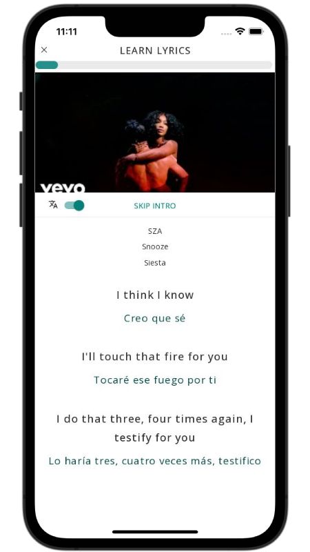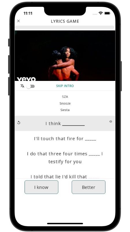 In addition to reading lyric translations, you can now learn English with music and lyrics from your favorite artists.