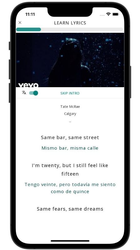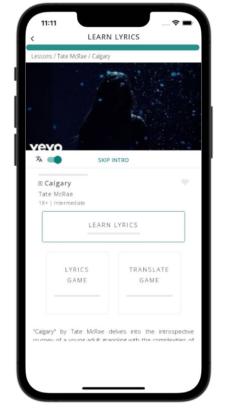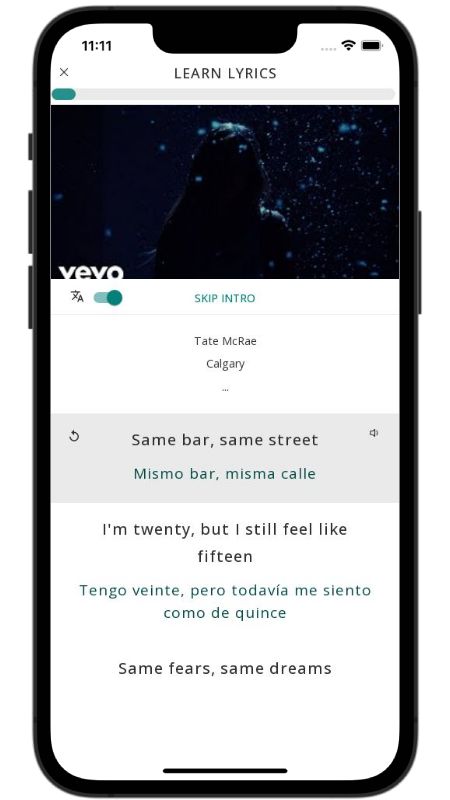 In addition to reading lyric translations, you can now learn English with music and lyrics from your favorite artists.