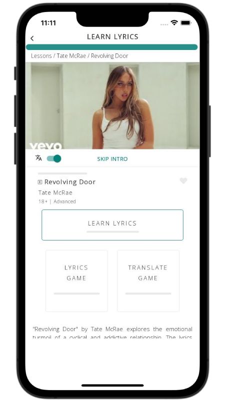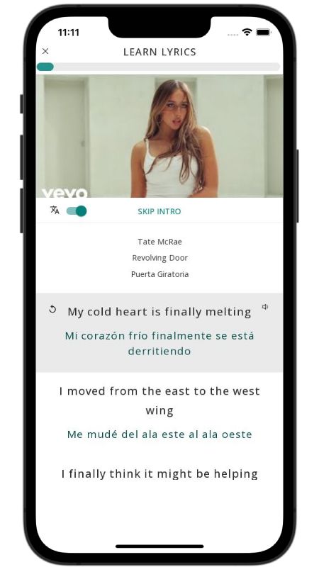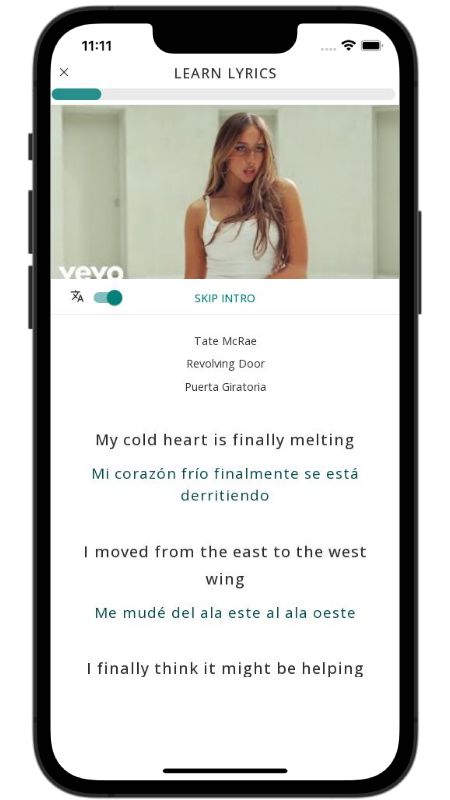 In addition to reading lyric translations, you can now learn English with music and lyrics from your favorite artists.