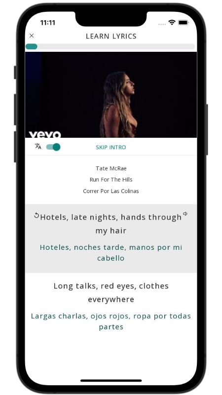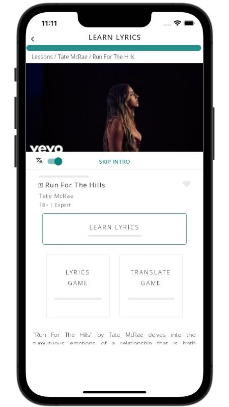 In addition to reading lyric translations, you can now learn English with music and lyrics from your favorite artists.