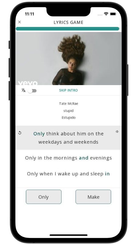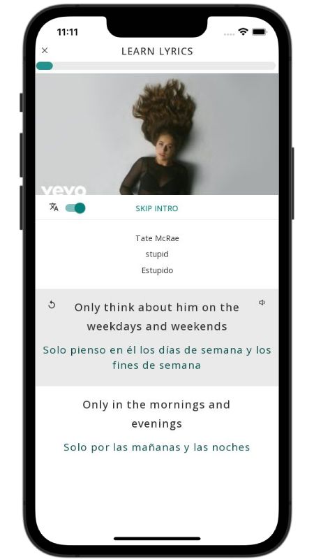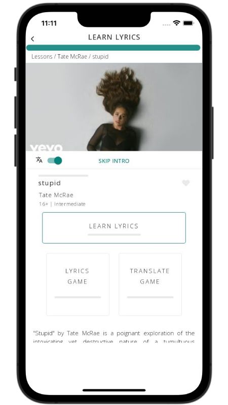 In addition to reading lyric translations, you can now learn English with music and lyrics from your favorite artists.