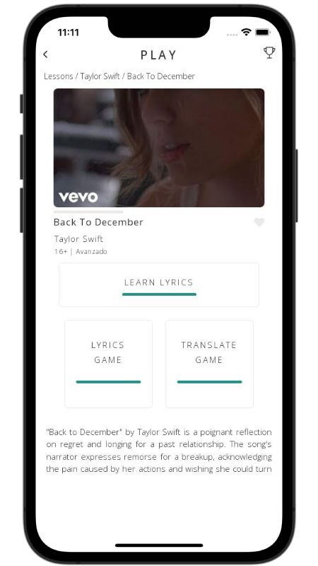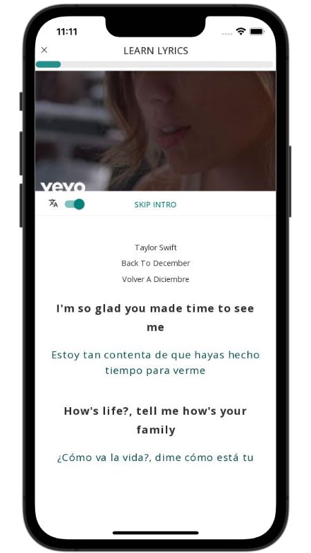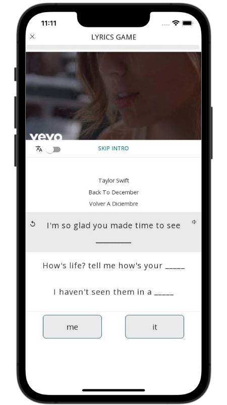 In addition to reading lyric translations, you can now learn English with music and lyrics from your favorite artists.