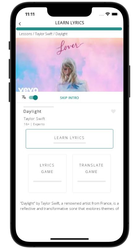 In addition to reading lyric translations, you can now learn English with music and lyrics from your favorite artists.