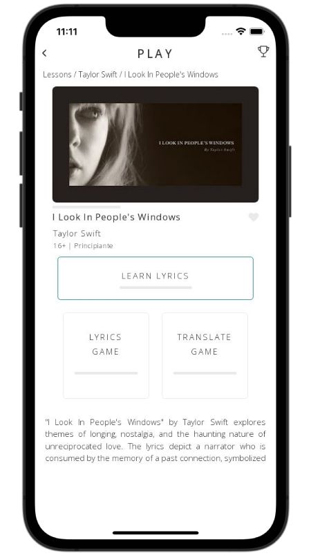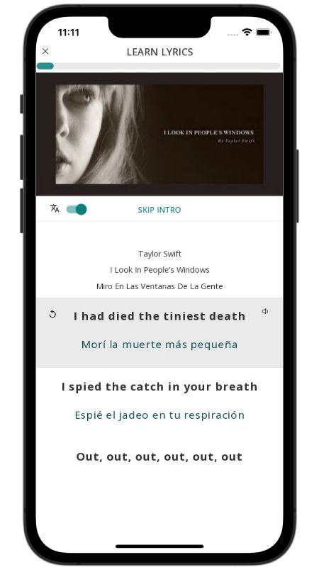 In addition to reading lyric translations, you can now learn English with music and lyrics from your favorite artists.
