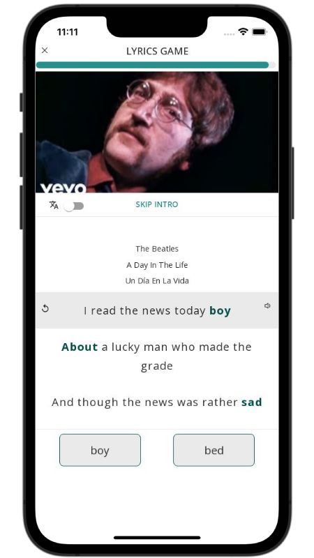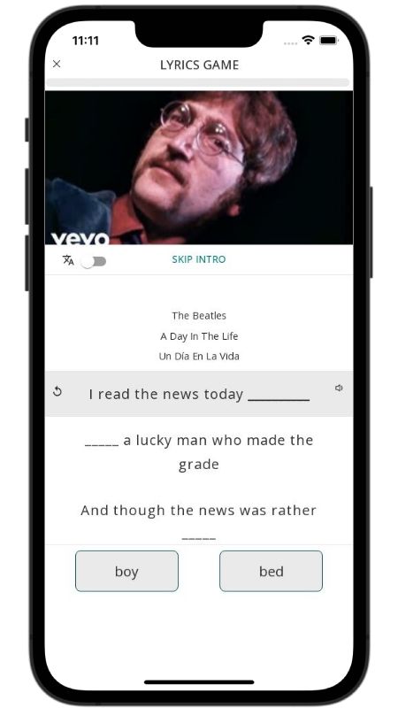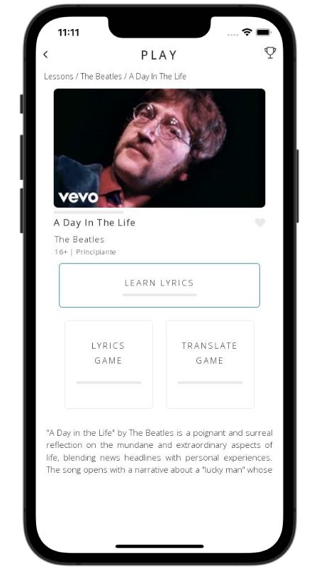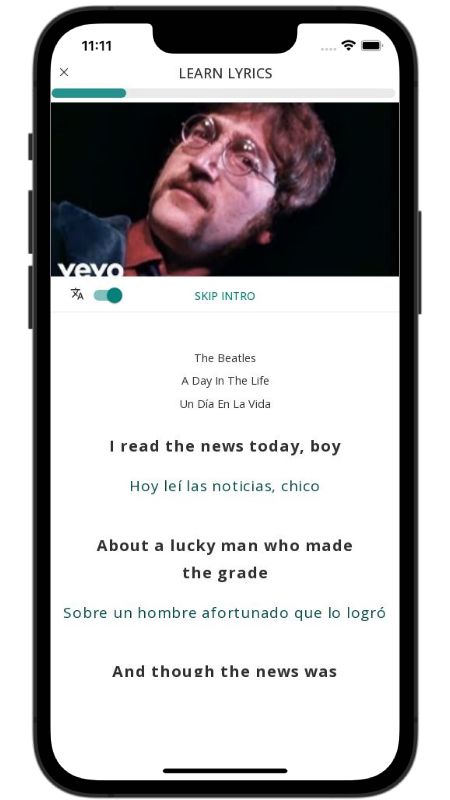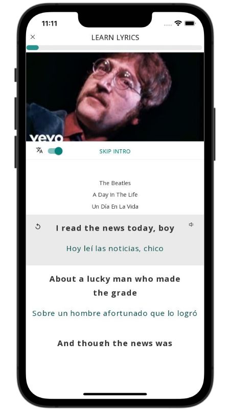 In addition to reading lyric translations, you can now learn English with music and lyrics from your favorite artists.