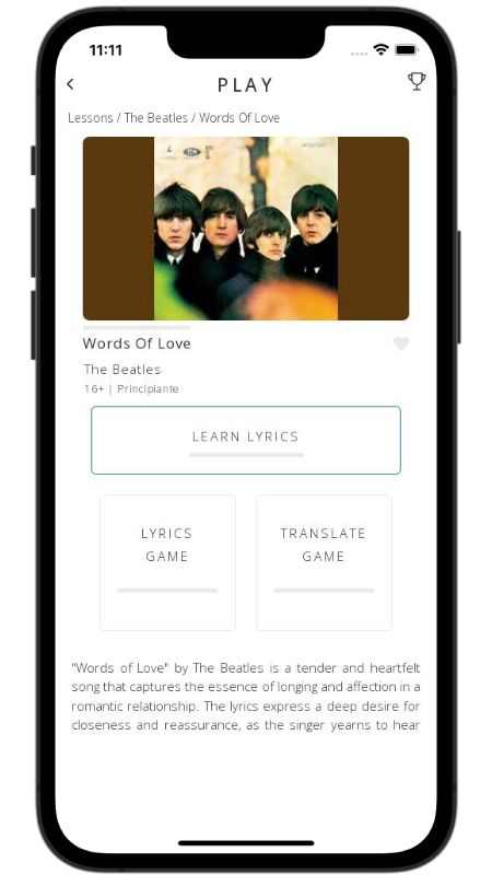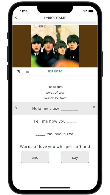 In addition to reading lyric translations, you can now learn English with music and lyrics from your favorite artists.