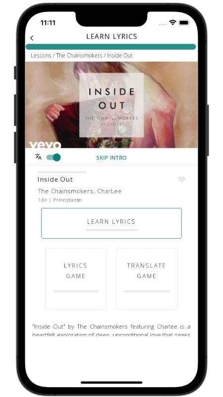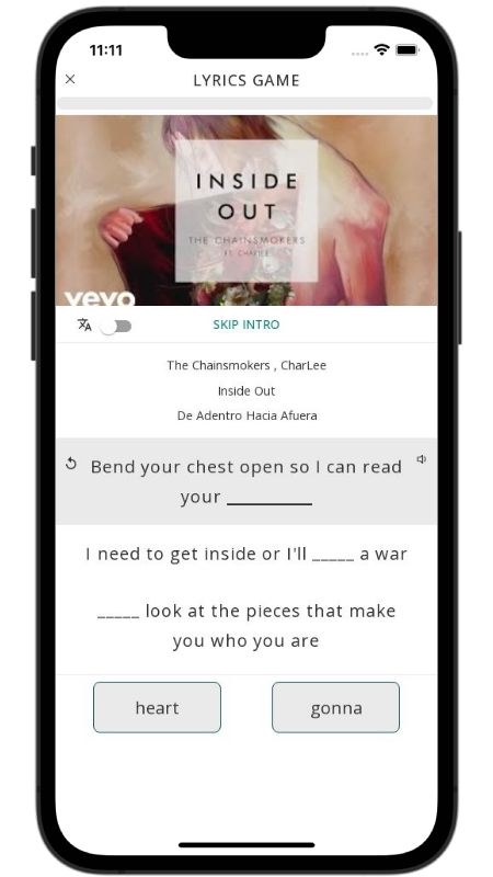 In addition to reading lyric translations, you can now learn English with music and lyrics from your favorite artists.