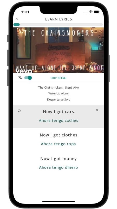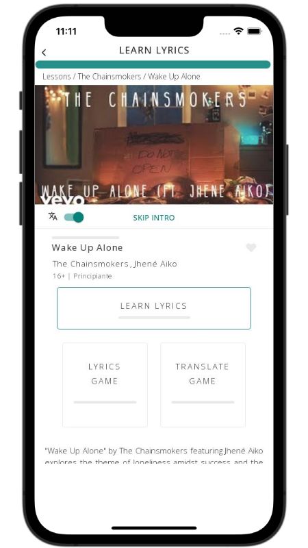 In addition to reading lyric translations, you can now learn English with music and lyrics from your favorite artists.