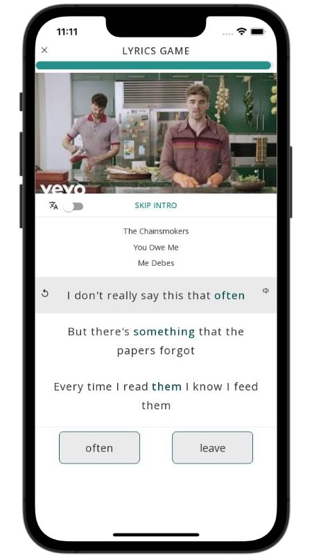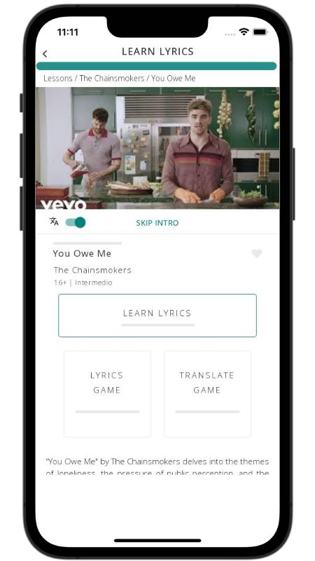 In addition to reading lyric translations, you can now learn English with music and lyrics from your favorite artists.