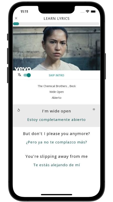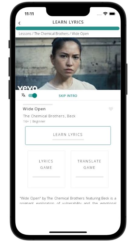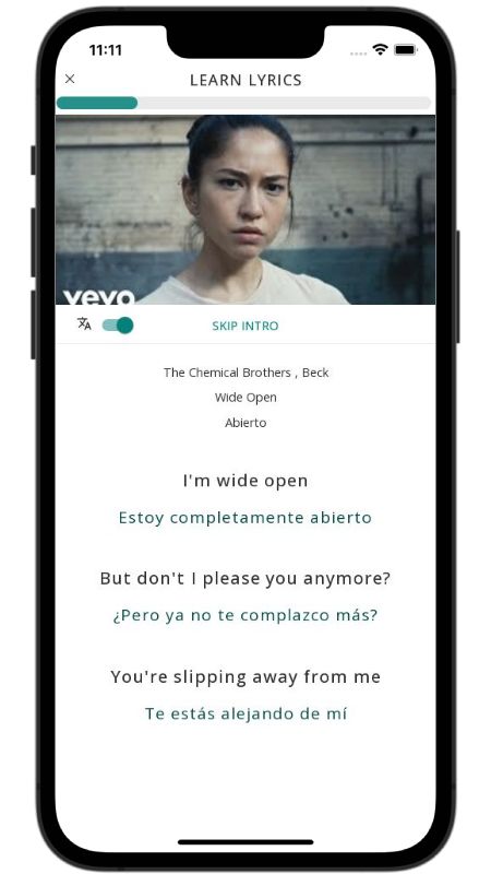 In addition to reading lyric translations, you can now learn English with music and lyrics from your favorite artists.