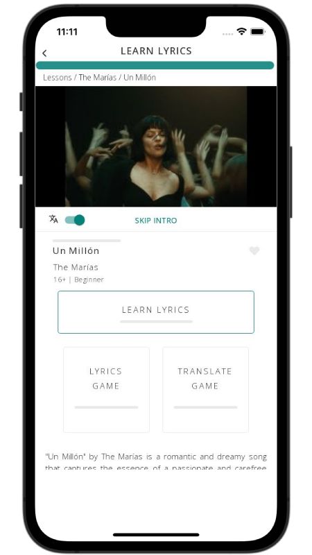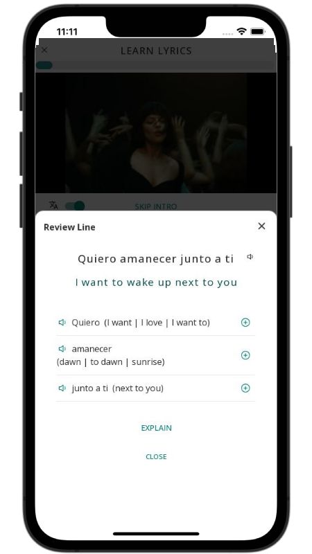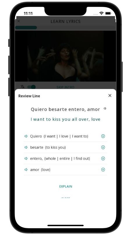 In addition to reading lyric translations, you can now learn Spanish with music and lyrics from your favorite artists.