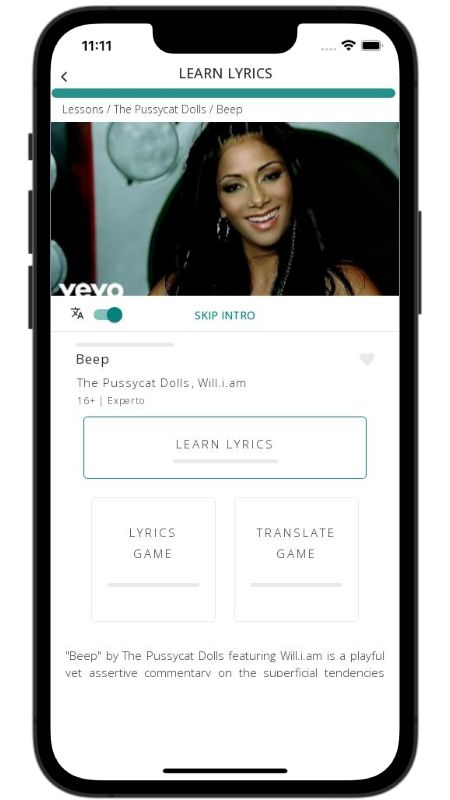 In addition to reading lyric translations, you can now learn English with music and lyrics from your favorite artists.