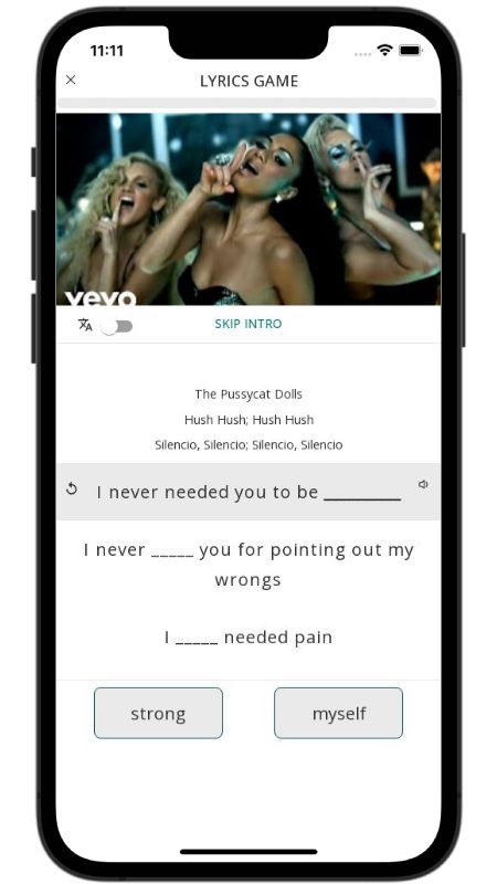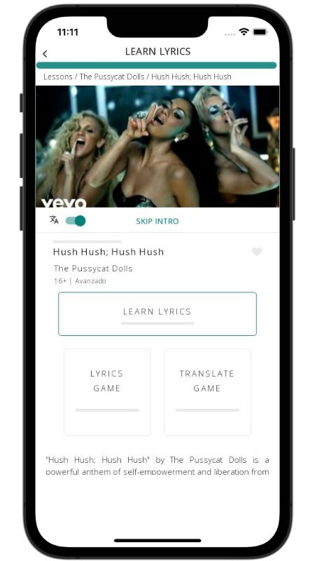 In addition to reading lyric translations, you can now learn English with music and lyrics from your favorite artists.