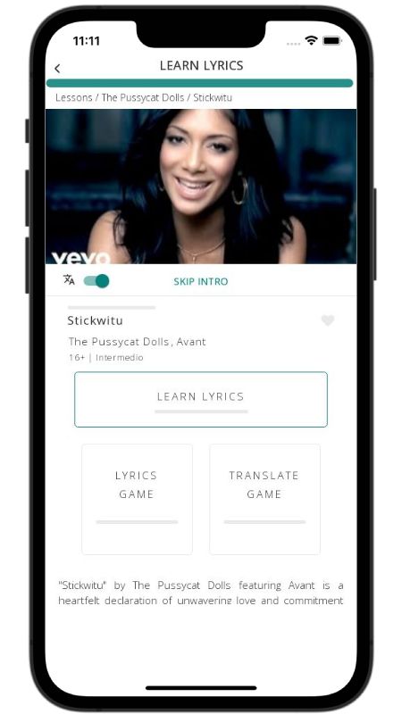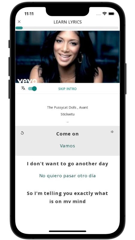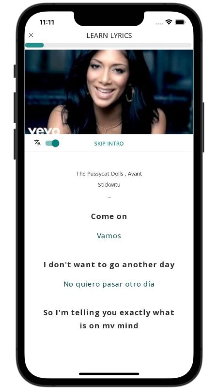 In addition to reading lyric translations, you can now learn English with music and lyrics from your favorite artists.