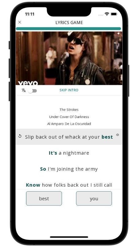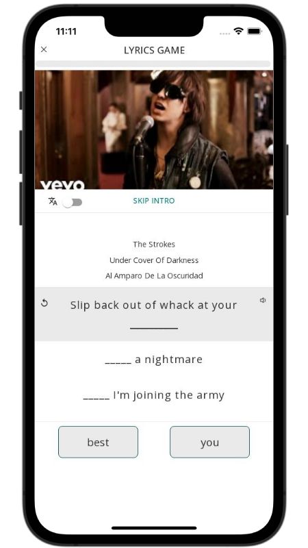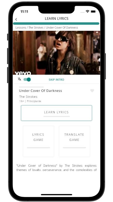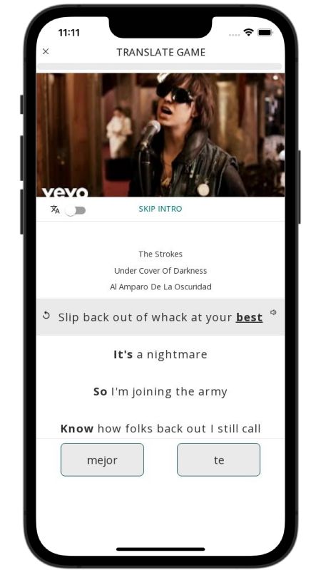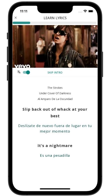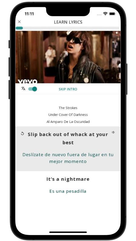 In addition to reading lyric translations, you can now learn English with music and lyrics from your favorite artists.