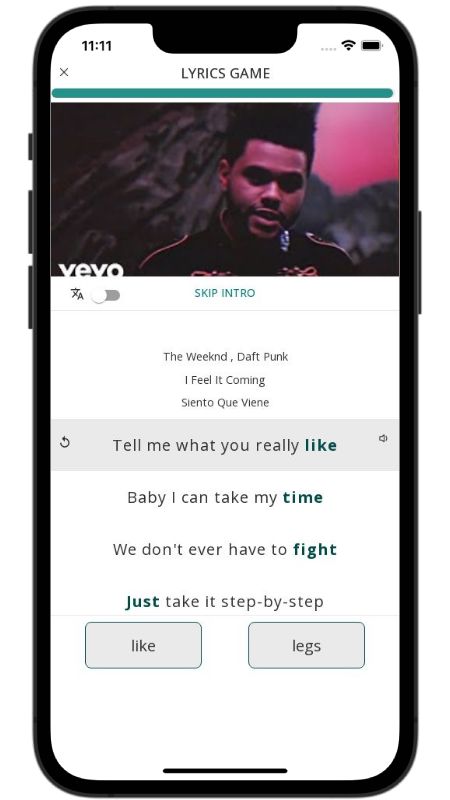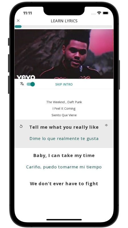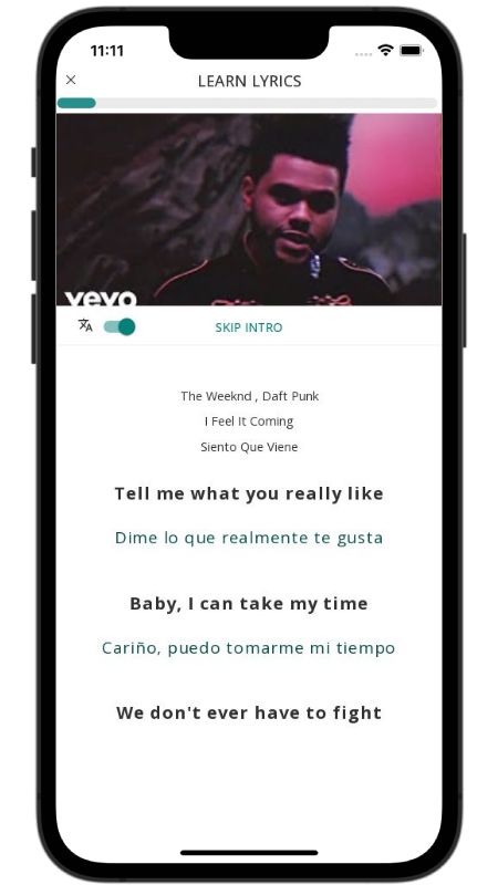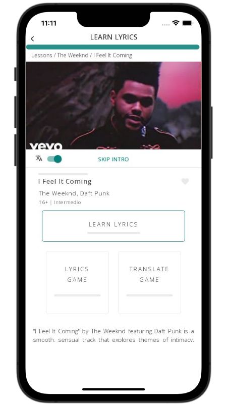 In addition to reading lyric translations, you can now learn English with music and lyrics from your favorite artists.