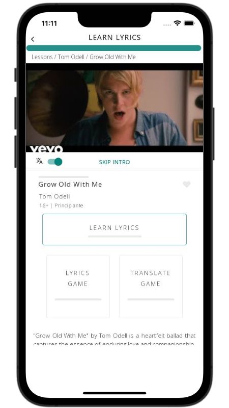 In addition to reading lyric translations, you can now learn English with music and lyrics from your favorite artists.