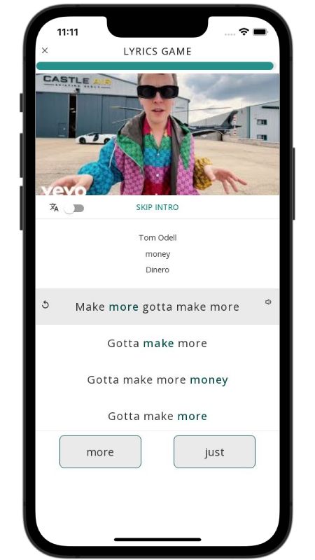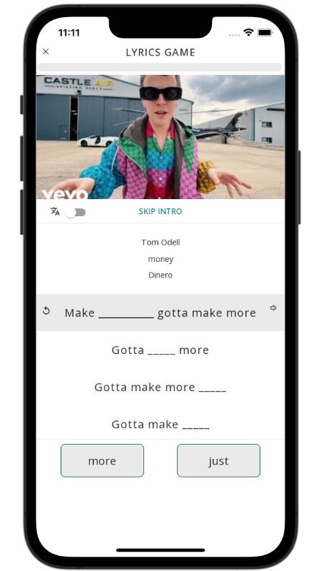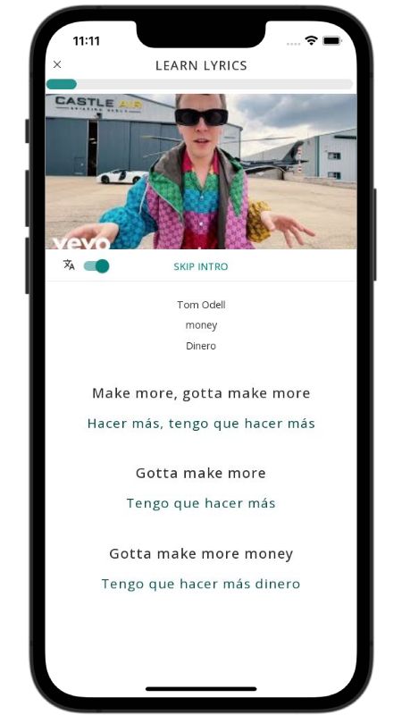 In addition to reading lyric translations, you can now learn English with music and lyrics from your favorite artists.