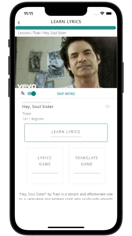 In addition to reading lyric translations, you can now learn English with music and lyrics from your favorite artists.
