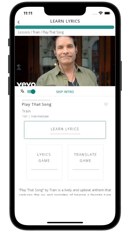 In addition to reading lyric translations, you can now learn English with music and lyrics from your favorite artists.