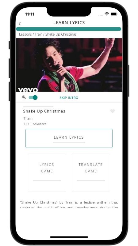 In addition to reading lyric translations, you can now learn English with music and lyrics from your favorite artists.