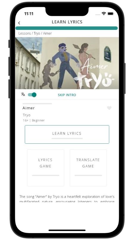 In addition to reading lyric translations, you can now learn French with music and lyrics from your favorite artists.