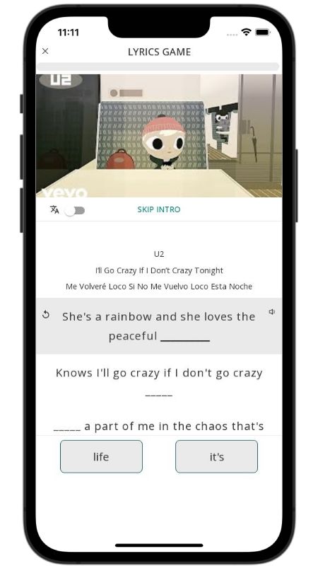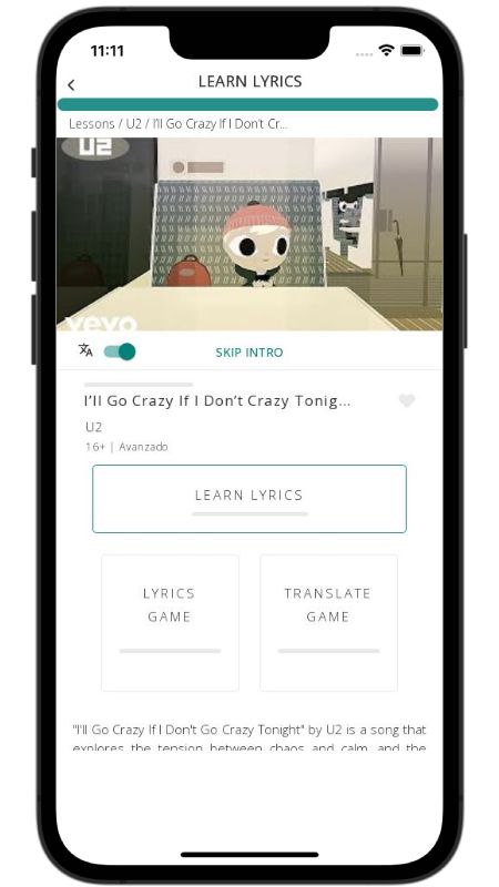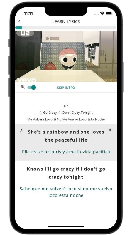 In addition to reading lyric translations, you can now learn English with music and lyrics from your favorite artists.