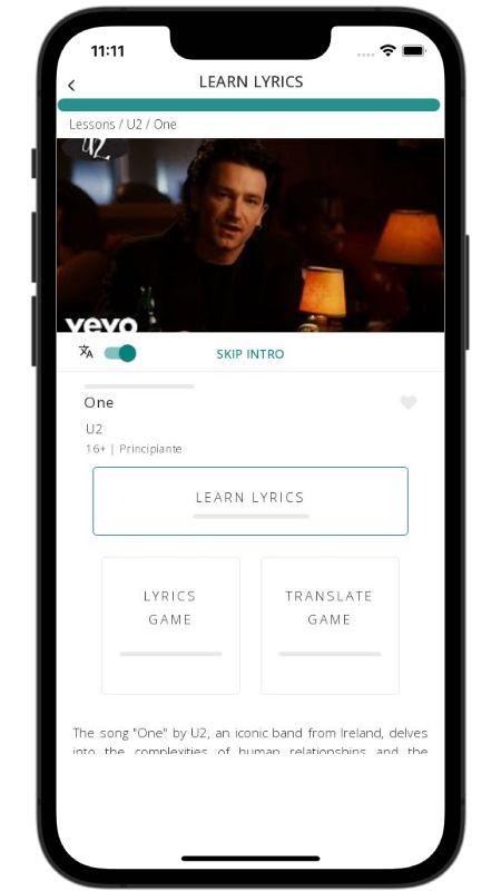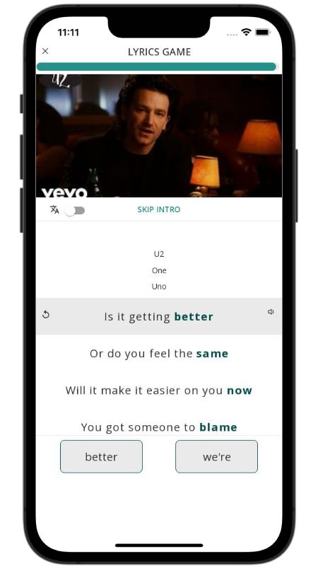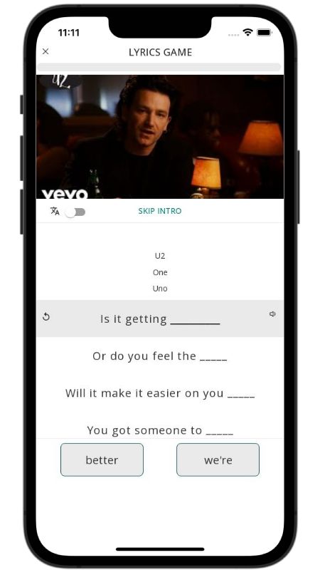 In addition to reading lyric translations, you can now learn English with music and lyrics from your favorite artists.