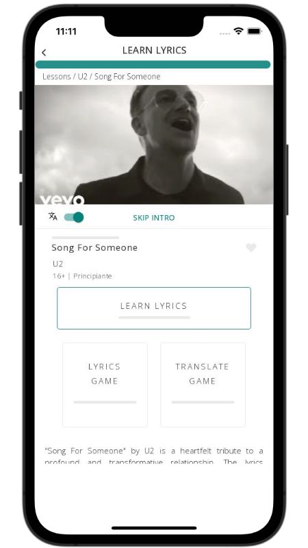 In addition to reading lyric translations, you can now learn English with music and lyrics from your favorite artists.