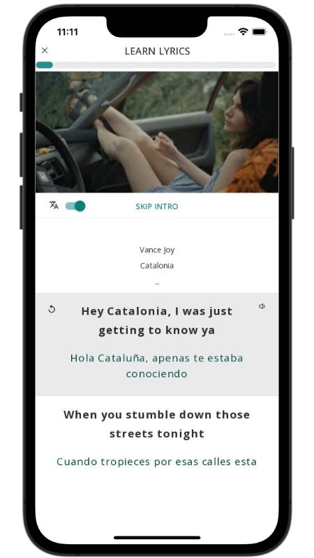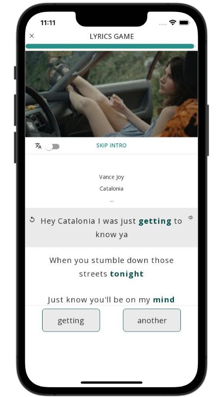 In addition to reading lyric translations, you can now learn English with music and lyrics from your favorite artists.