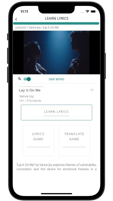 In addition to reading lyric translations, you can now learn English with music and lyrics from your favorite artists.
