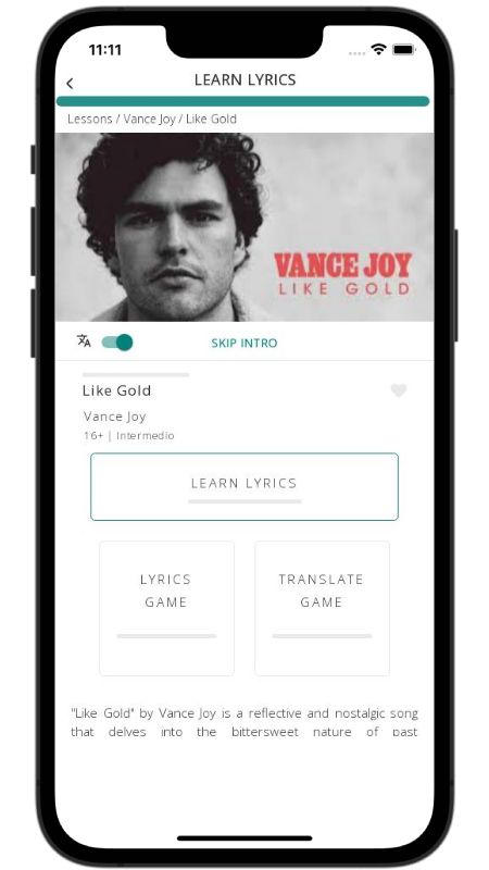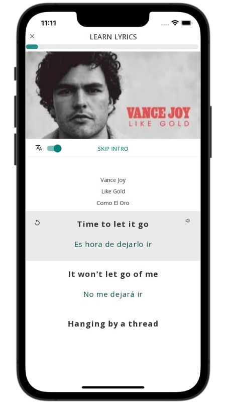 In addition to reading lyric translations, you can now learn English with music and lyrics from your favorite artists.